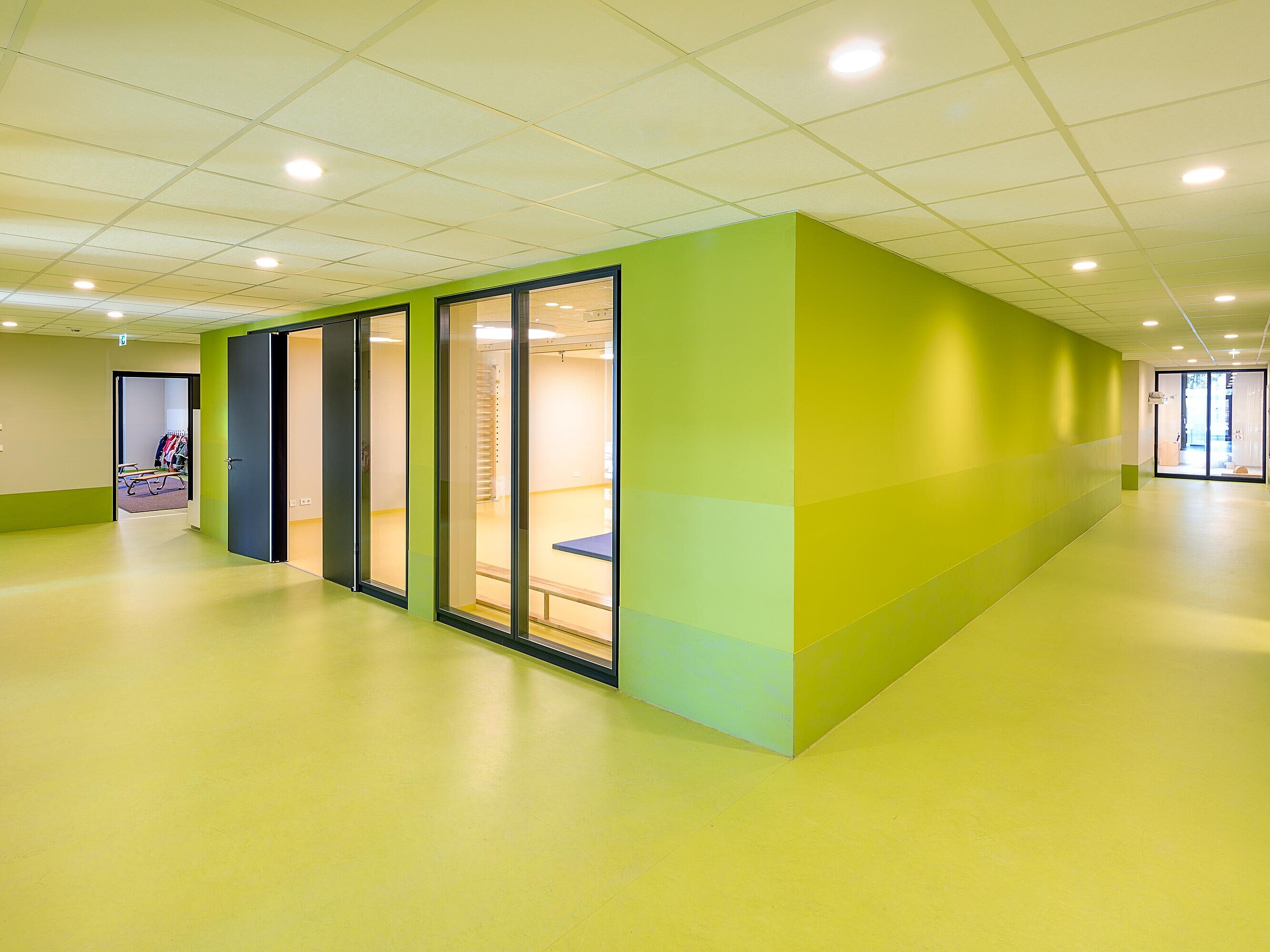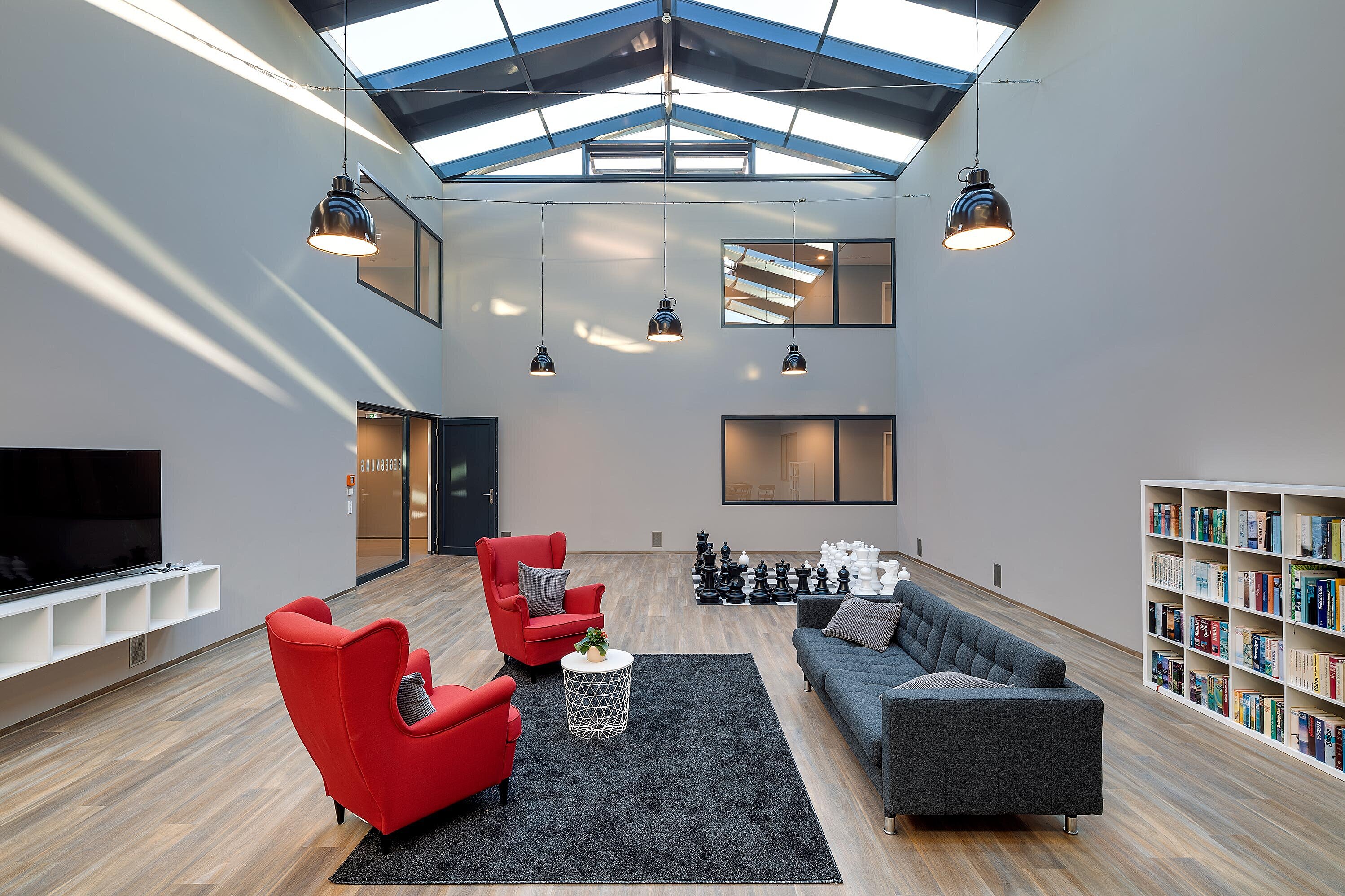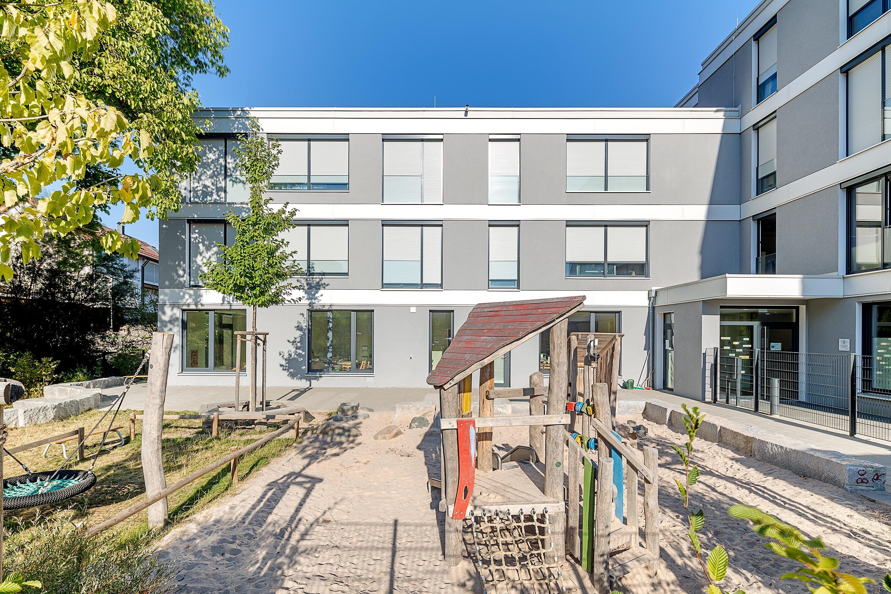 Dieses Konzept wird begleitet durch das Mehrgenerationenprinzip mit Integration einer Kita, einer Physiotherapiepraxis, sowie wenn notwendig mit unterstützenden professionellem Betreuungs- und Dienstleistungsangeboten für die Bewohner. Besonders gestaltete Räume wie die beiden Atrien u.a. mit Fitnessangebot und einem gemeinschaftlichem Wohnzimmer, einem zentralen Waschsalon und einem separaten Gemeinschaftsraum mit Einbauküche, berücksichtigen den sozialen Aspekt von Begegnungen und Kontakten zwischen Privatheit und Gemeinschaft.