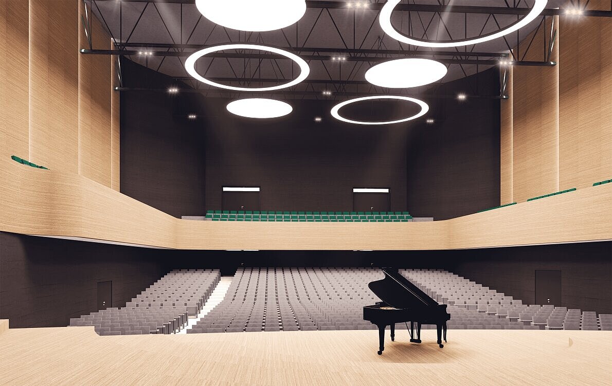 Neben einem modernen, akustisch optimalen Konzertsaal mit 1.000 Sitzplätzen und einer flexiblen Bühne, die auch die Aufführung größerer Orchesterwerke zulässt, gibt es einen Probensaal mit gleicher Bühnengröße sowie einen Veranstaltungsraum mit circa 150 Sitzplätzen.