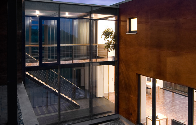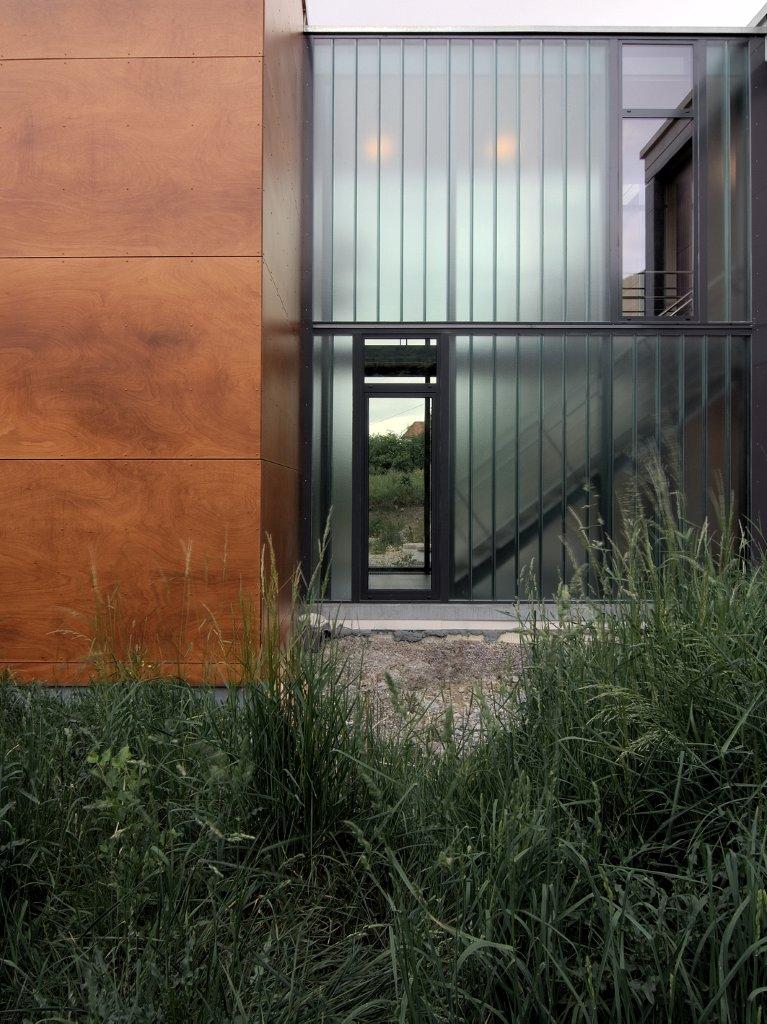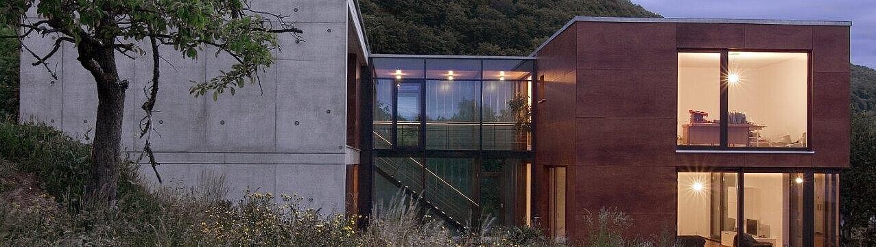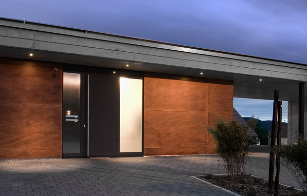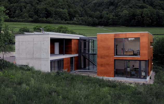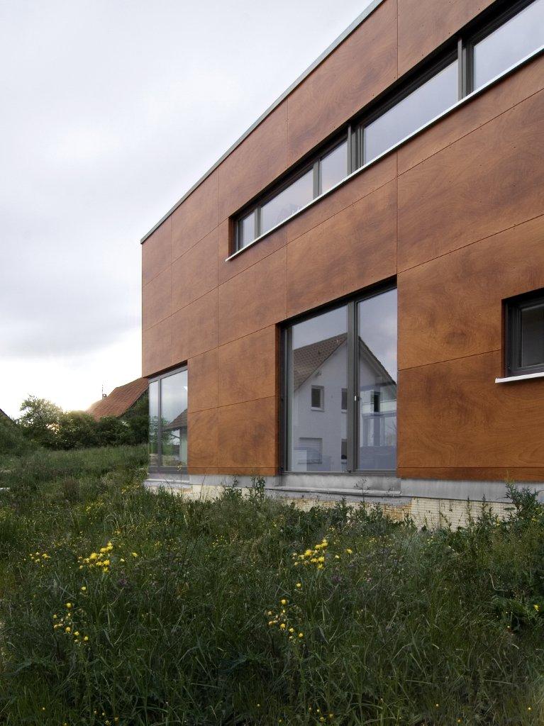 Das Projekt stieß auf offene Türen bei der örtlichen Baubehörde, nicht zuletzt durch das interessante Materialkonzept aus Schichtholz-Fassadenplatten und Sichtbeton, das sich klar in die Umgebung einfügt.
